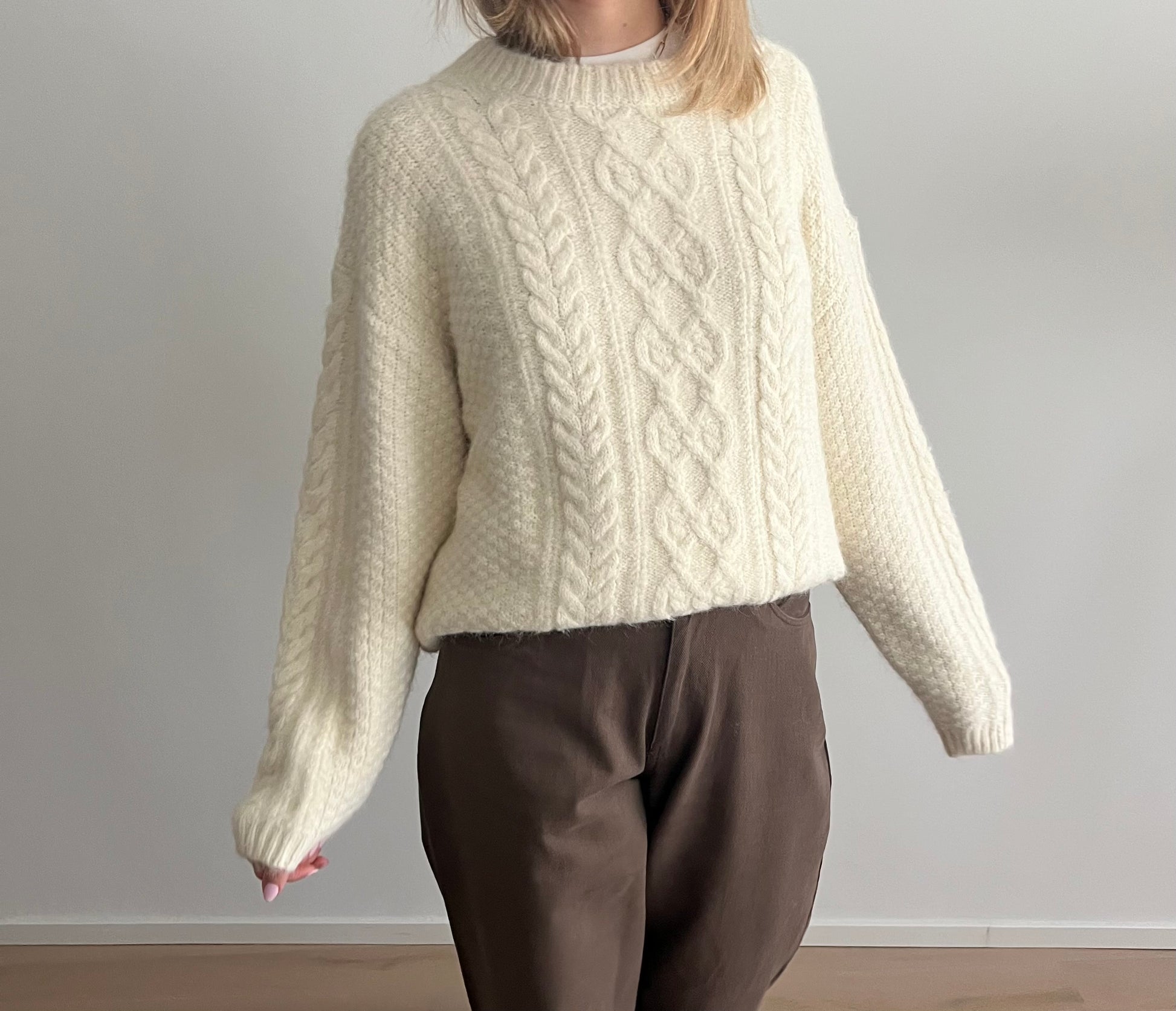 Get cozy with our Astrid cable knitwear in ivory! This ivory sweater is perfect for chilly days, this sweater will be your go-to for effortless comfort. Grab yours now!Made from a very soft and thick fabric.