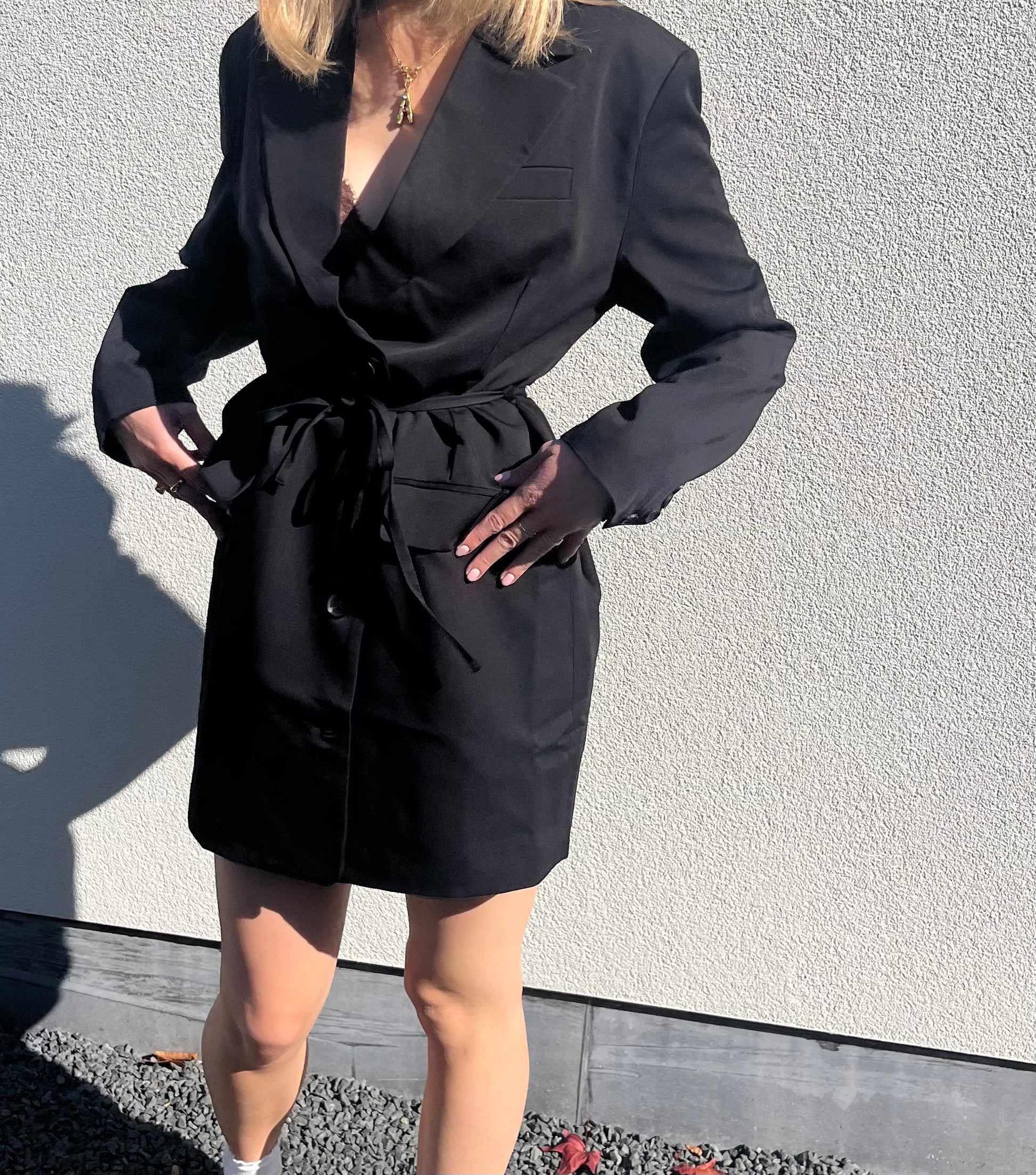 thanks to its sleek, tailored cut. This dress-style suit jacket