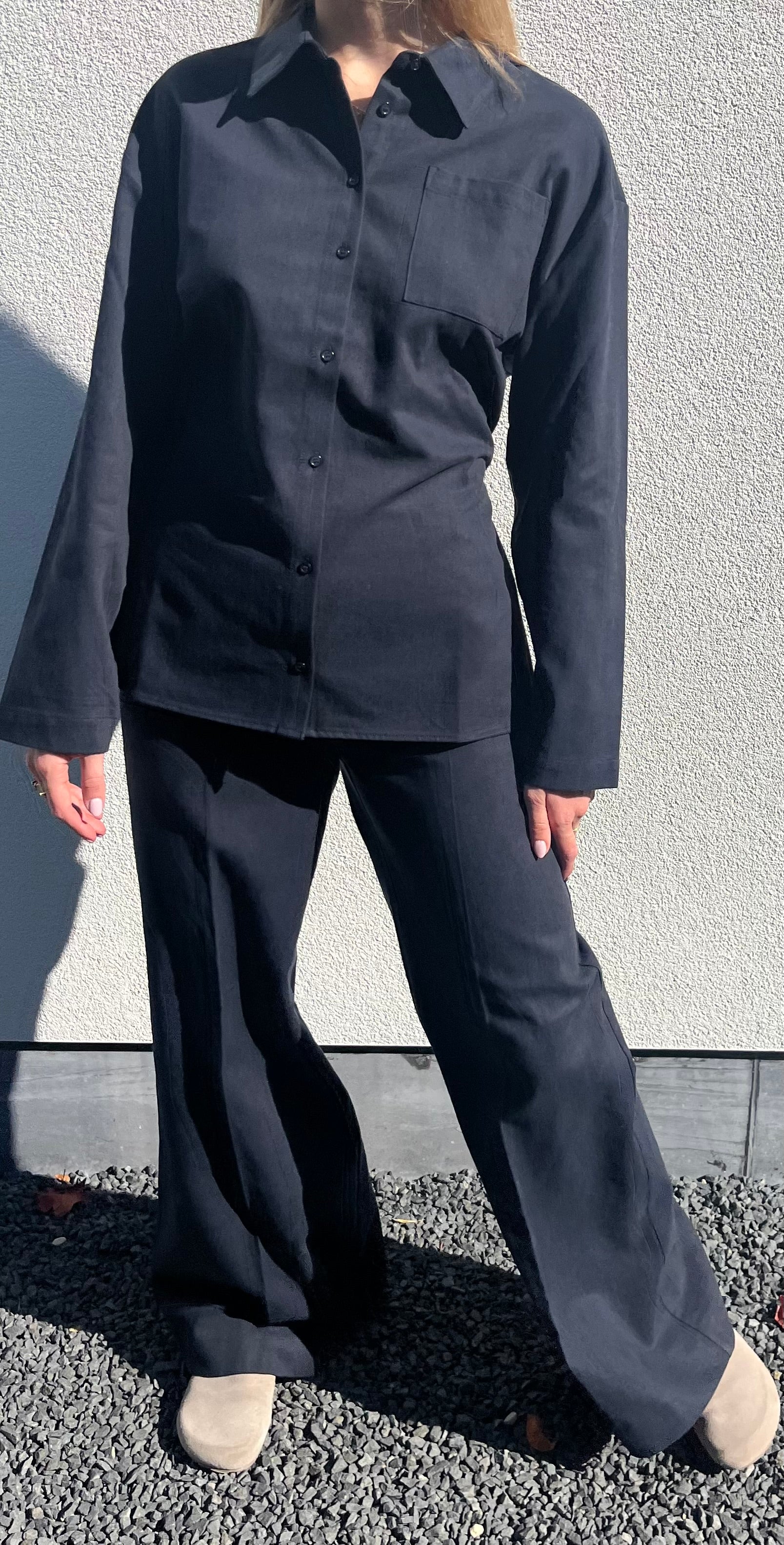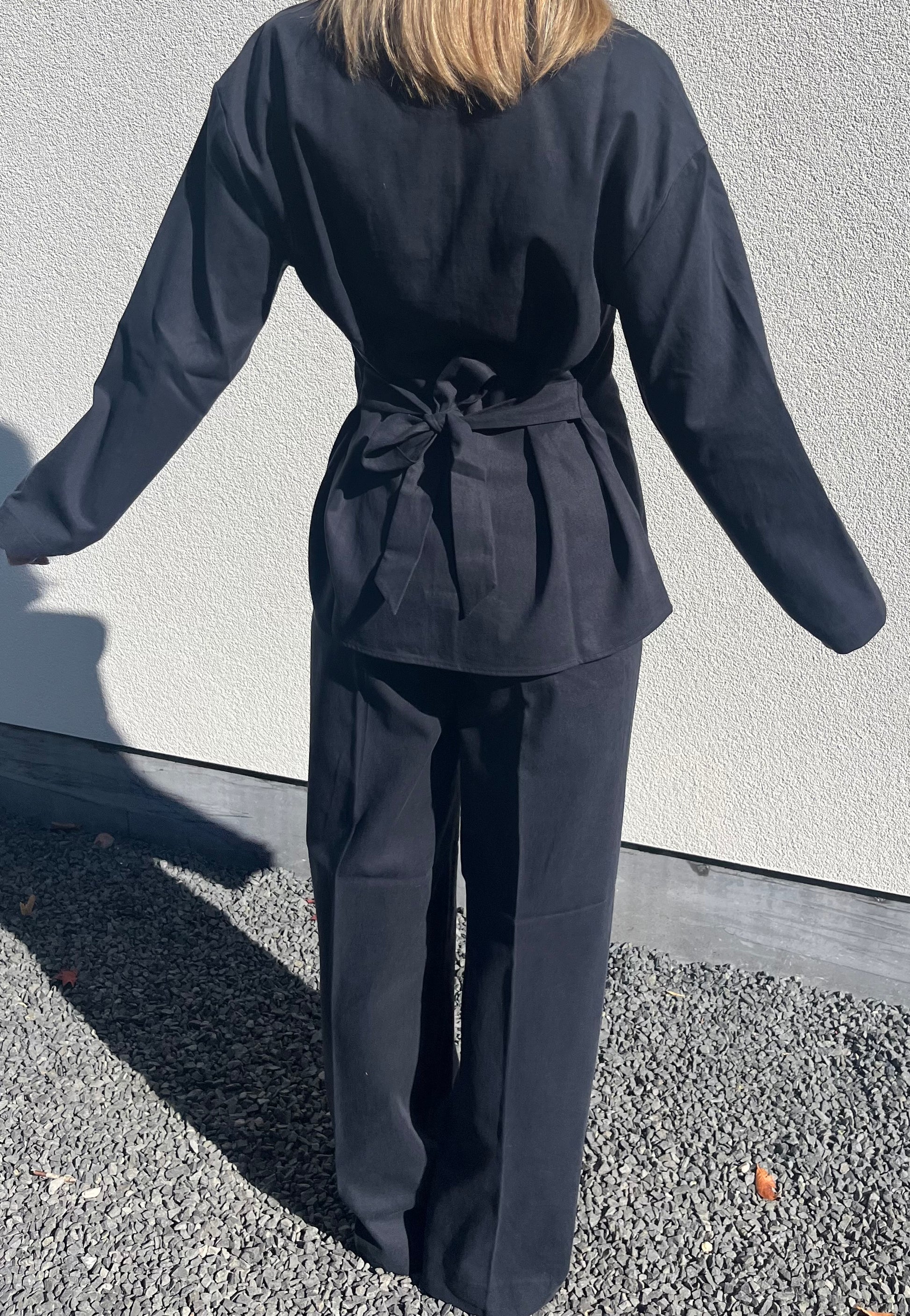 dark blue fabric. The elegant, straight cut gives the trousers a refined look. Pairs beautifully with the Lilian Shirt for a sophisticated look.