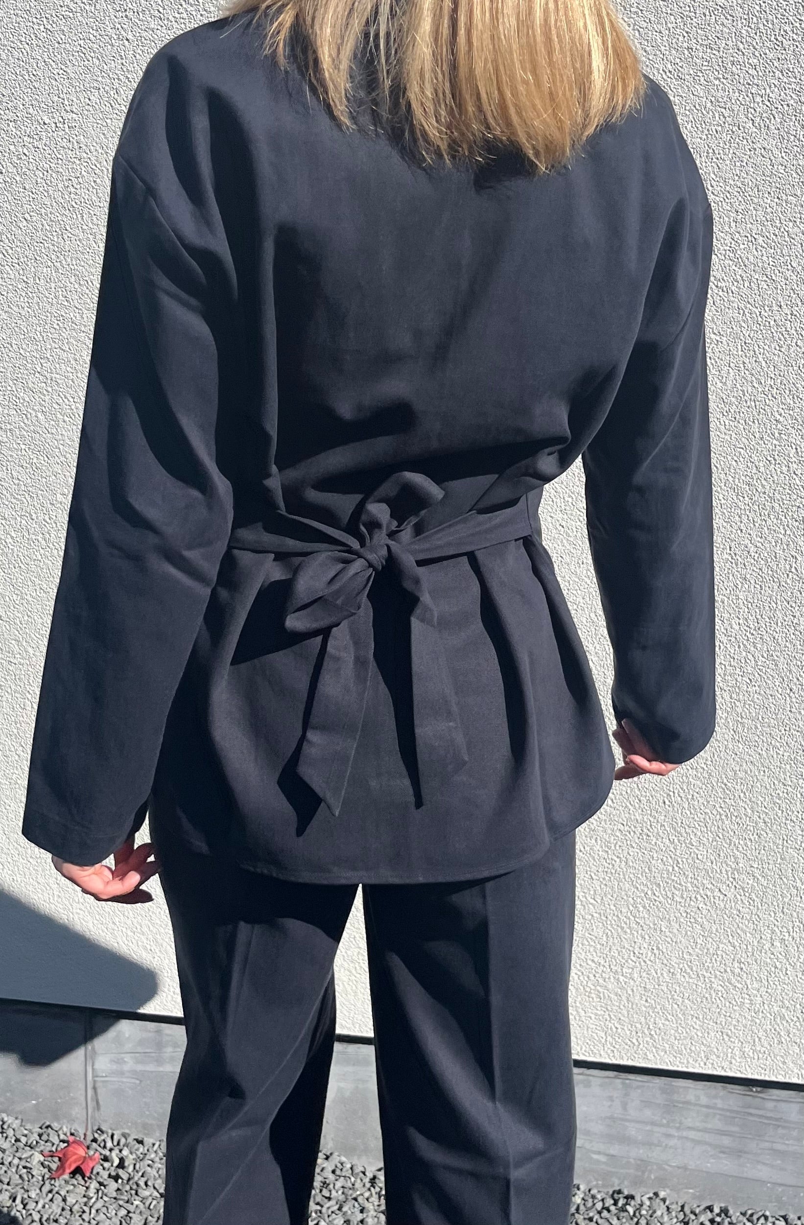The Lilian Shirt combines strength and elegance with its sturdy, dark blue fabric. The delicate buttons at the front add a refined touch, while the tie belt can be tied at the back or front for a playful, bold look. Dare to stand out and wear this shirt with the Lilian pants for an elegant, confident outfit. Perfect for any occasion.