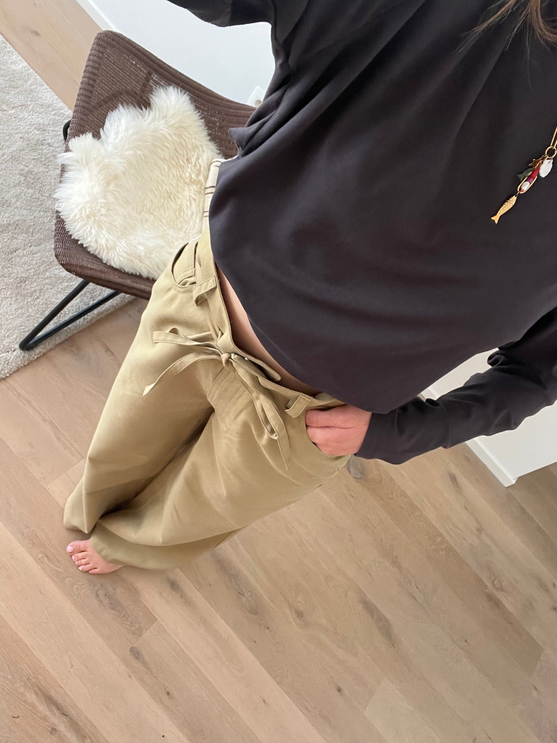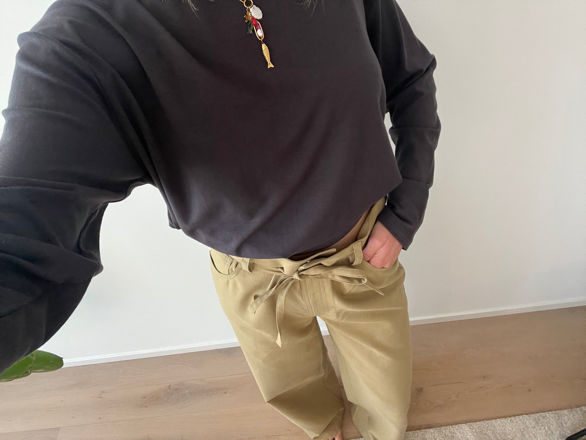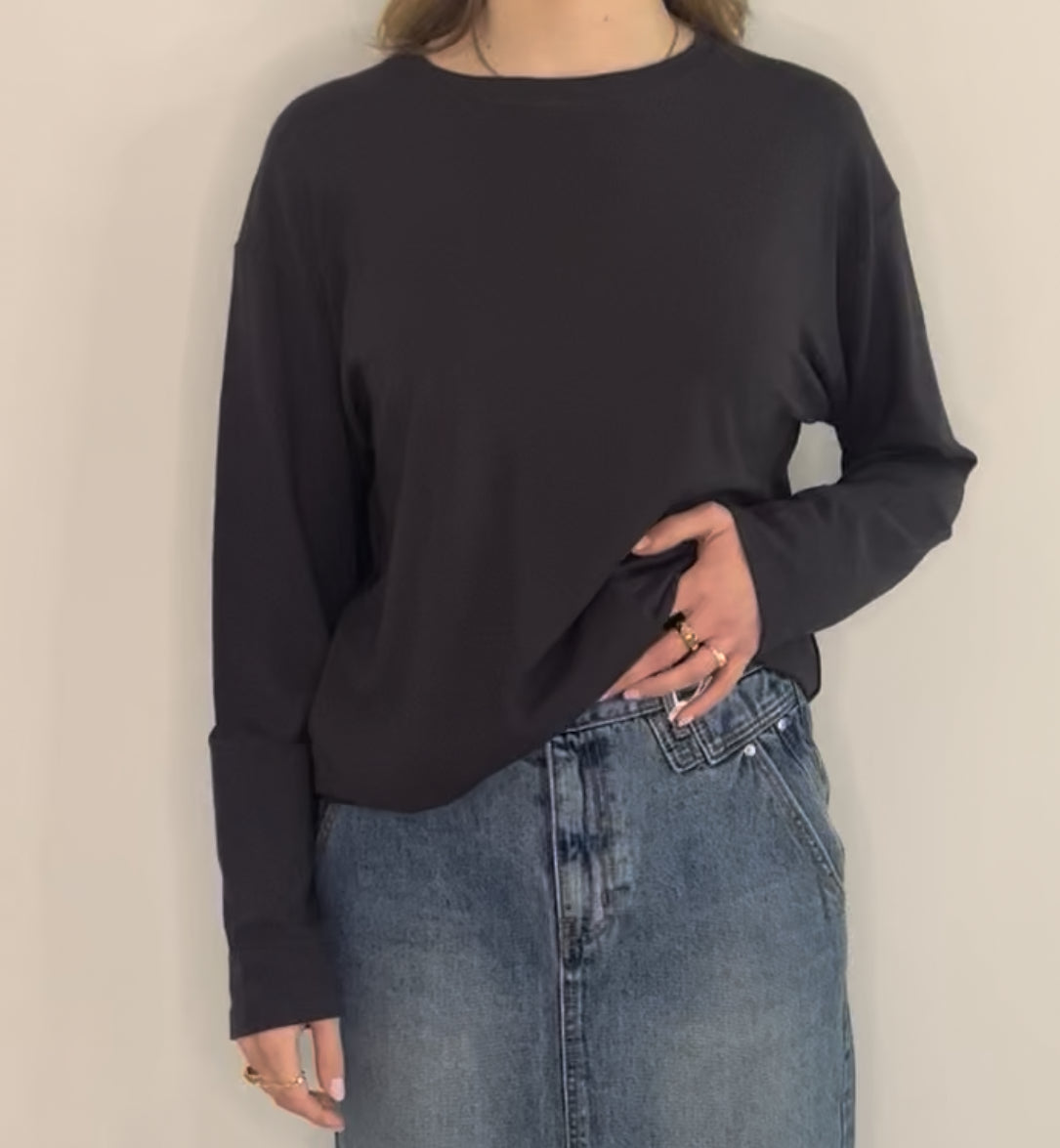 The "Luna long-sleeved shirt" is made with a soft and comfortable grey fabric. This shirt features a round neck and a relaxed, loose fit. Perfect for all-day wear, it offers a comfortable and stylish option for any occasion.